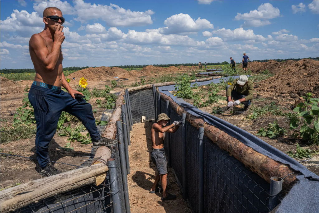 Installing a trench line in eastern Ukraine last month. Russia’s incremental advances have been slowed by the Ukrainians’ hardened lines in recent months.Credit…Daniel Berehulak/The New York Times